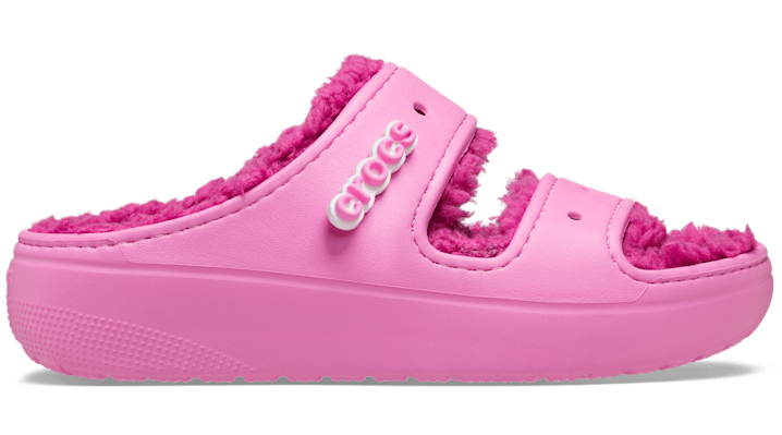 The new Classic Cozzzy Sandal features a soft, fuzzy liner, style-forward heightened outsoles and two upper straps that offer enhanced foot security. Seven holes on each sandal allow for maximum personalization with Jibbitz™ charms, while Croslite™ foam construction keeps them light and easy to wear. Classic Cozzzy Sandal Details: Warm, fuzzy liner Two-strap upper Style-forward heightened outsoles Incredibly light and fun to wear Croslite™ foam footbeds for lasting comfort Customizable with Jibbitz™ charms (sold separately) Iconic Crocs Comfort™: Lightweight. Flexible. 360-degree comfort.