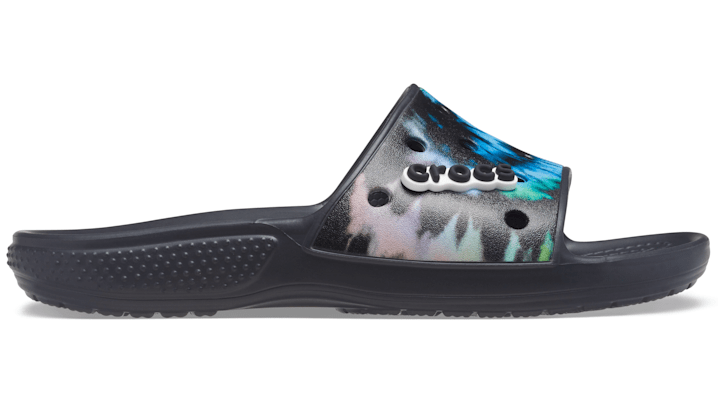 Original. Customizable. Comfortable.The ever-comfortable Classic II Slide gets the customization upgrade fans have been asking for in the Classic Crocs Slide: holes for Jibbitz™ charms! Each slide has room for 13 charms so you can load up your sandals with tons of personality. Original Croslite™ foam cushion will keep you comfortably supported from the beach to backyard gatherings and beyond. The bright pops of tie-dye graphics on these slides are the perfect way to make a groovy style statement. Classic Crocs Tie-Dye Graphic Slide Details: Includes a Crocs logo Jibbitz™ charm Incredibly light and fun to wear Easy to clean and quick to dry Croslite™ foam footbeds for lasting comfort Customizable with Jibbitz™ charms Iconic Crocs Comfort™: Lightweight. Flexible. 360-degree comfort. Vibrant tie-dye graphics on the uppers Incredibly light and fun to wear Easy to clean and quick to dry Croslite™ foam footbeds for lasting comfort Customizable with Jibbitz™ charms Iconic Crocs Comfort™: Lightweight. Flexible. 360-degree comfort.