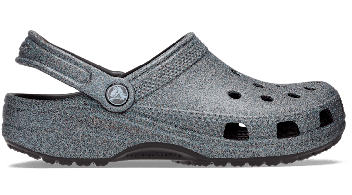 An upgraded take on glitter combines with iconic Crocs comfort in the Classic Glitter Clog. Features holographic glitter that gives off a rainbow-shine effect when looked at from different angles. It’s the dynamic, stylish clog that you're sure to fall deeper in love with day after day. Shine on! Classic Glitter Clog Details: Features holographic glitter Incredibly light and fun to wear Ventilation ports add breathability and help shed water and debris Easy to clean and quick to dry Pivoting heel straps for a more secure fit Customizable with Jibbitz charms Iconic Crocs Comfort: Lightweight. Flexible. 360-degree comfort.