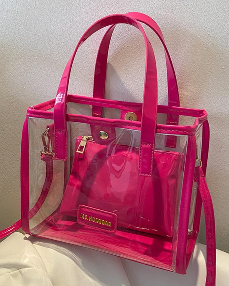 Clear Large Capacity Shoulder Handbag With Inner Pouch, Pink