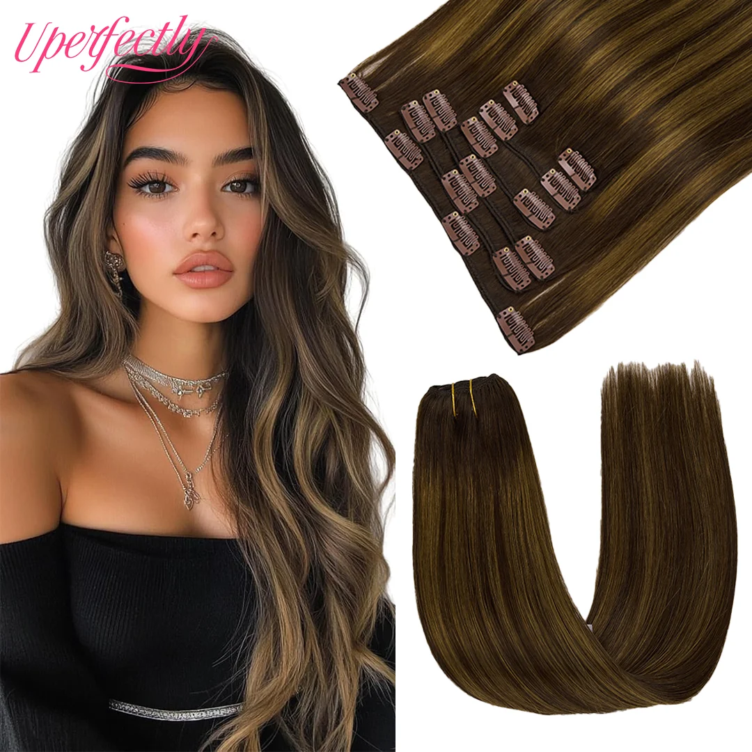 Clip In Hair Extensions 100% European Remy Real Human Hair Straight Extensions 7Pcs Per Set Double Weft Thick Full Soft Silky