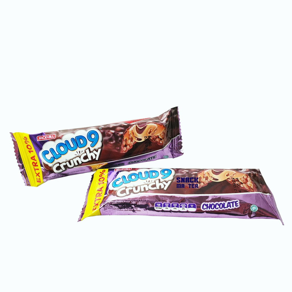 Cloud9 Crunchy merupakan salah satu produk dari JacknJill. Merupakan sereal berlapis karamel bertabur rice crispy yang crunchy, dibalut dengan cokelat lezat nan menggoda. Dijual per pcs bernetto 16 gram. Ber BPOM dan Halal MUI