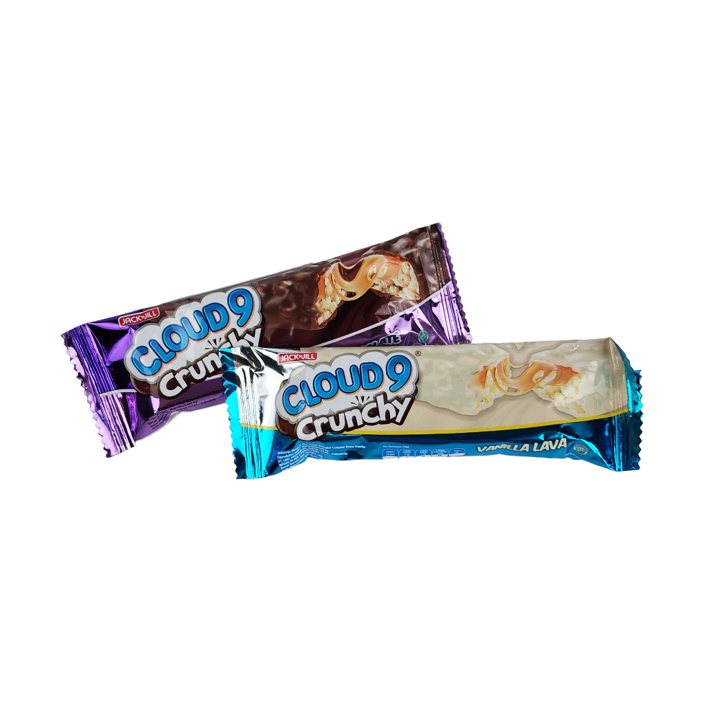 Cloud9 Crunchy merupakan salah satu produk dari JacknJill. Merupakan sereal berlapis karamel bertabur rice crispy yang crunchy, dibalut dengan cokelat lezat nan menggoda. Dijual per pcs bernetto 16 gram. Ber BPOM dan Halal MUI
