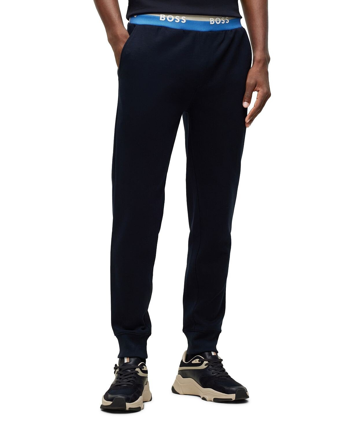 Мужские спортивные штаны boss из смесового хлопка с логотипом на поясе Hugo Boss, темно-синий