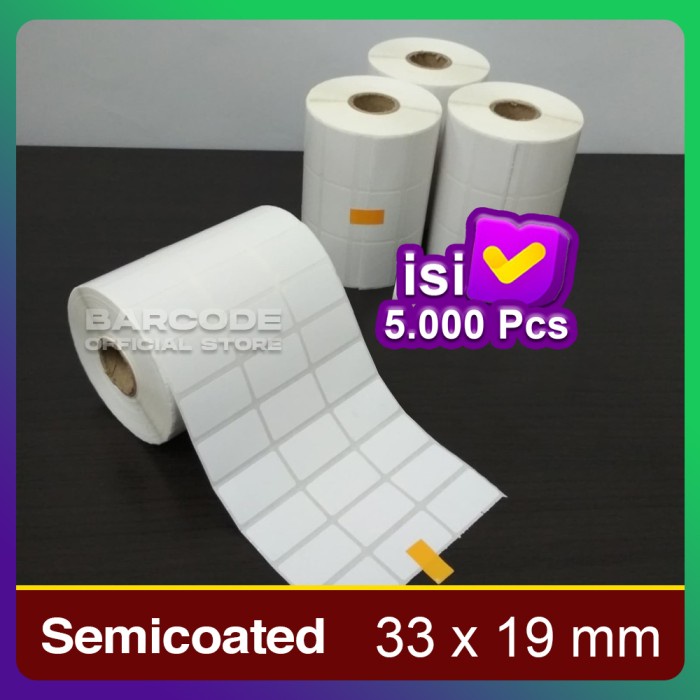 Code549 Kertas Stiker Printer Barcode 33 X 19 Mm - 3 Line - Semicoated 5000Pcs