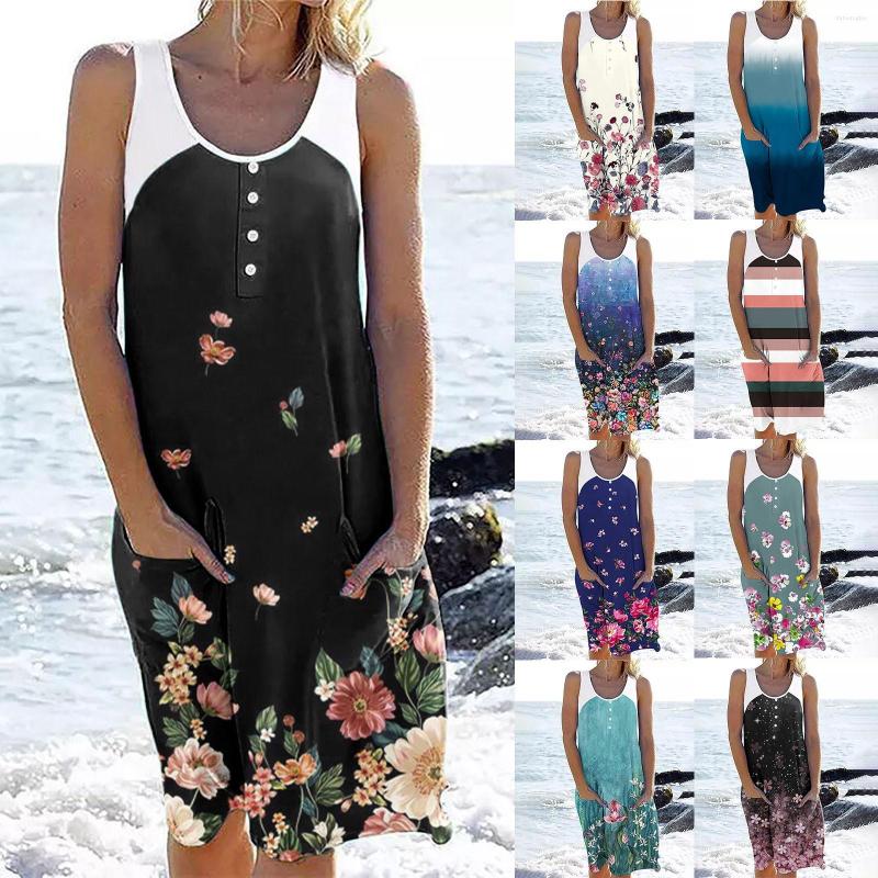 Casual Dresses Women Summer Dress Round Neck Sleeveless Tank Beach Swing Fashion Loose Midi, Purple