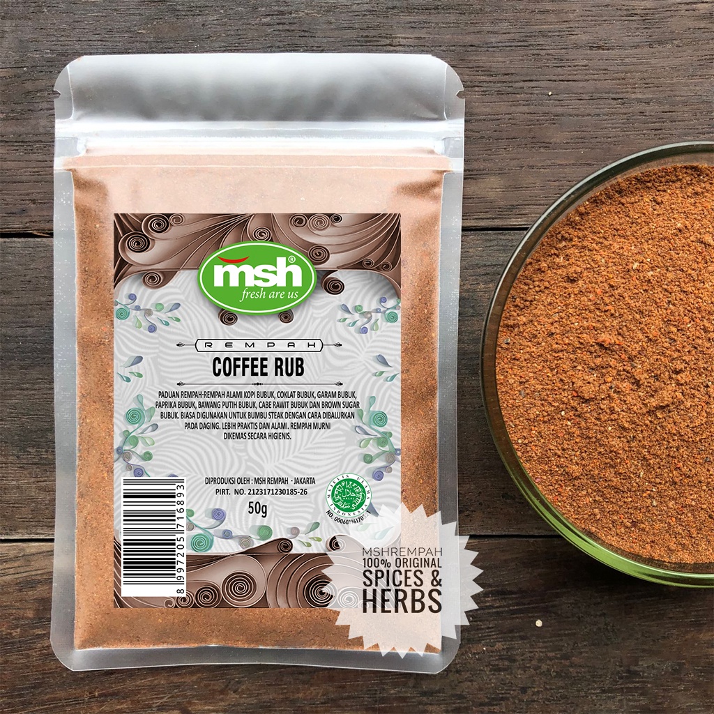 Coffe Rub adalah bubuk bumbu untuk membuat steak yang diracik khusus dari rempah-rempah pilihan, sehingga menghasilkan rasa steak yang nikmat dan khas. Bumbu ini merupakan simplisia kering murni yang diolah dan dikemas secara higienis.