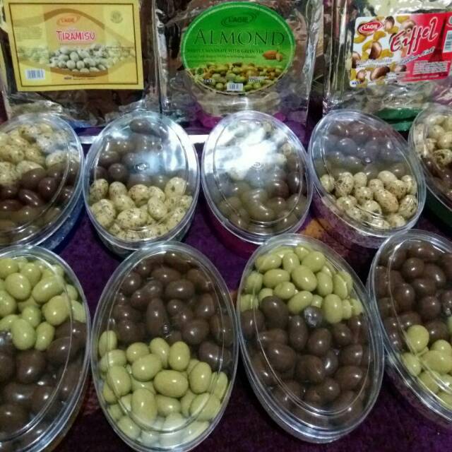Cokelat dengan berbagai macam isi seperti kacang Almond, kacang Mete & kacang tanah..