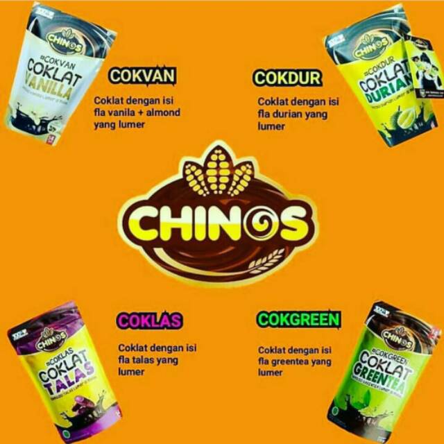Chinos coklat terbuat dari coklat berkualitas premium dengan 4 varian rasa di dalamnya.