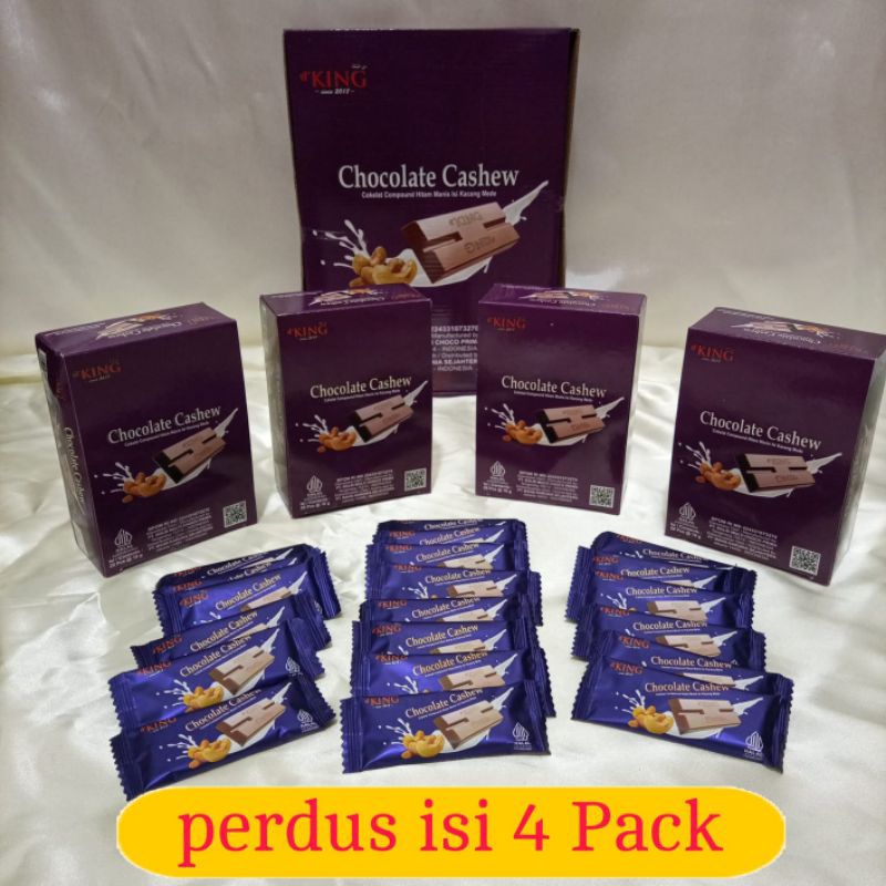 Coklat Cashew d'KING Chocolate ( cokelat Compound isi kacang mede) 1 dus isi 4 pack 80 pcs