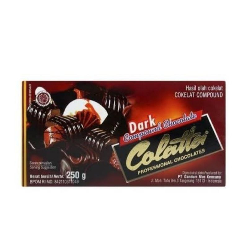 Colatta Compound Dark adalah cokelat hitam compound yang memiliki rasa pekat dan mengkilap. Cokelat ini sering digunakan untuk membuat kue, permen, praline, dan lainnya.
