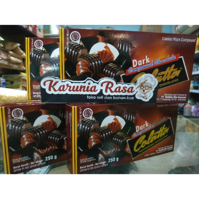 colatta compound chocolate diformulasikan secara khusus untuk penanganan cokelat yang mudah dan hasil yang terbaik loh.. juga cocok untuk dijadikan hiasan kue, dicetak, diserut, isian kue, dll