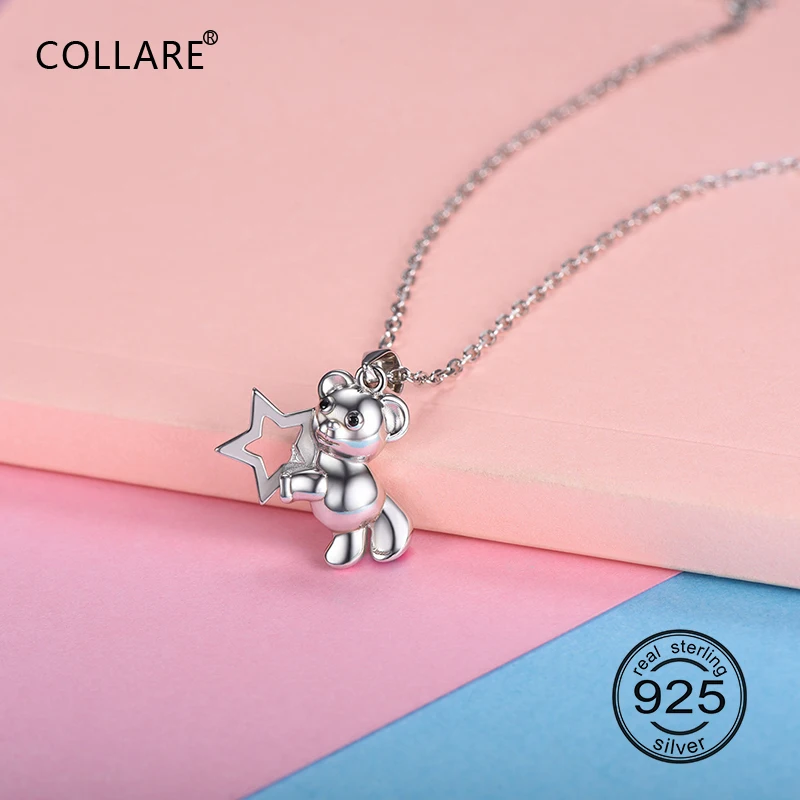 Collare, 100% Стерлинговое Серебро 925 пробы, кулон с медведем, милое животное, ювелирное изделие на День святого Валентина, изысканный подарок для ...