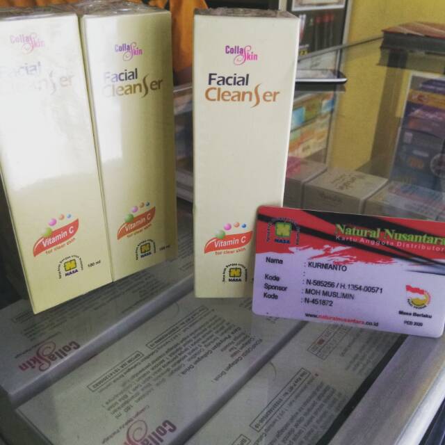 CollaSkin Facial Cleanser with Collagen merupakan satu produk perawatan wajah terbaru dari PT Natural Nusantara yang diformulasikan khusus untuk membersihkan muka atau wajah dengan kandungan kolagen alami. Produk Collagen Facial Cleanser dari Collaskin Series ini terbuat dari kolagen tulang sapi pilihan yang sudah mengantongi sertifikasi halal dari MUI dan dilengkapi pula dengan kandungan Vitamin C tinggi untuk membuat kulit anda lebih cerah alami. CollaSkin Facial Cleanser sangat bermanfaat untuk perawatan kulit wajah apapun jenis kulit anda, baik wanita maupun pria, muda ataupun tua. Manfaat CollaSkin Facial Cleanser: -Membersihkan kulit wajah -Mengangkat sel kulit mati -Mencerahkan dan memutihkan kulit wajah -Meratakan warna kulit wajah -Meremajakan / meregenerasi sel kulit wajah sehingga tampak awet muda -Mencegah dan menyembuhkan jerawat -Menghilangkan flek hitam dan bekas jerawat -Mengecilkan pori-pori -Menjaga kelembaban wajah -Mengontrol minyak berlebih. Komposisi Kandungan CollaSkin Facial Cleanser Kandungan utama Collagen Facial Cleanser adalah kolagen dari tulang sapi pilihan. Dan berikut ini rincian komposisinya : -Aqua -Sodium Lauryl Sulfate -Cocamide DEA -Cocamidopropyl Betaine -Collagen -Niacinamide -Citric Acid -5Bromo-Nitro-1,3-Dioxane -Fragrance Component and Finished Fragrance. Cara Pakai Collaskin Facial Cleanser: Tuangkan Facial Cleanser pada telapak tangan secukupnya, basahi dengan air, gosok-gosok kedua telapak tangan sampai berbusa, lalu usapkan ke seluruh bagian wajah (dan leher bila perlu). Gunakan 2 kali sehari. Bisa juga digunakan untuk membersihkan sisa make-up. Legalitas ijin edar BPOM NA 18161201642 Collaskin Facial Cleanser tersedia dalam kemasan botol dengan isi 100 ml. Dapatkan produk Collagen Facial Cleanser ini hanya di Stockist Nasa dan Distributor Resmi Nasa.