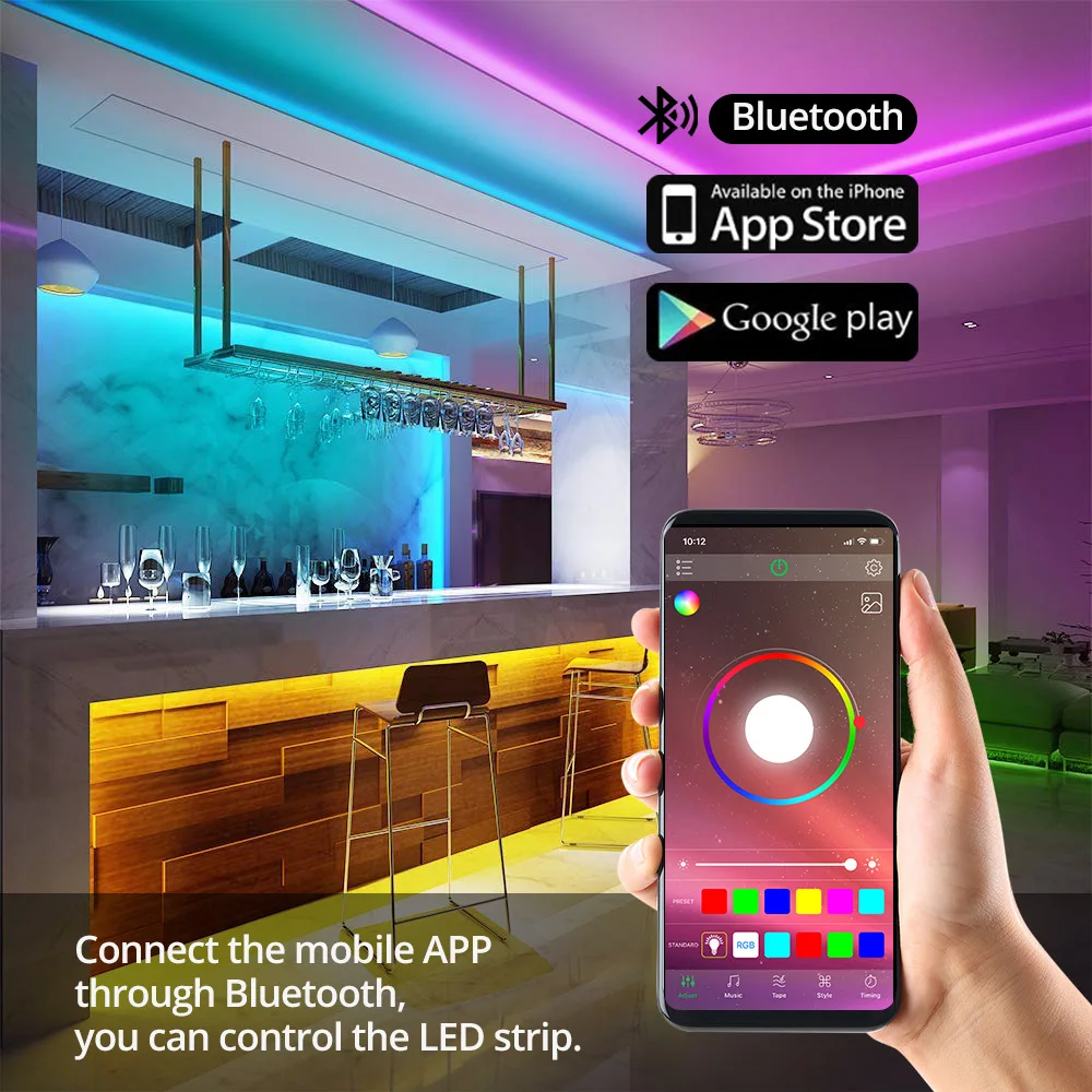 Color Led Lights 10M Smart Bluetooth Color Changeable Strip Light Remote Control Intelligent Voice Light Strip Lighting