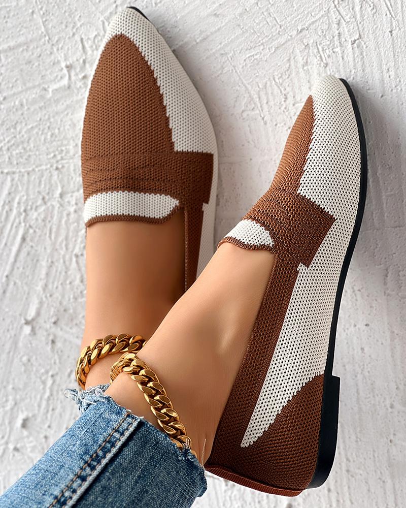 Colorblock Breathable Point Toe Slip On, Brown