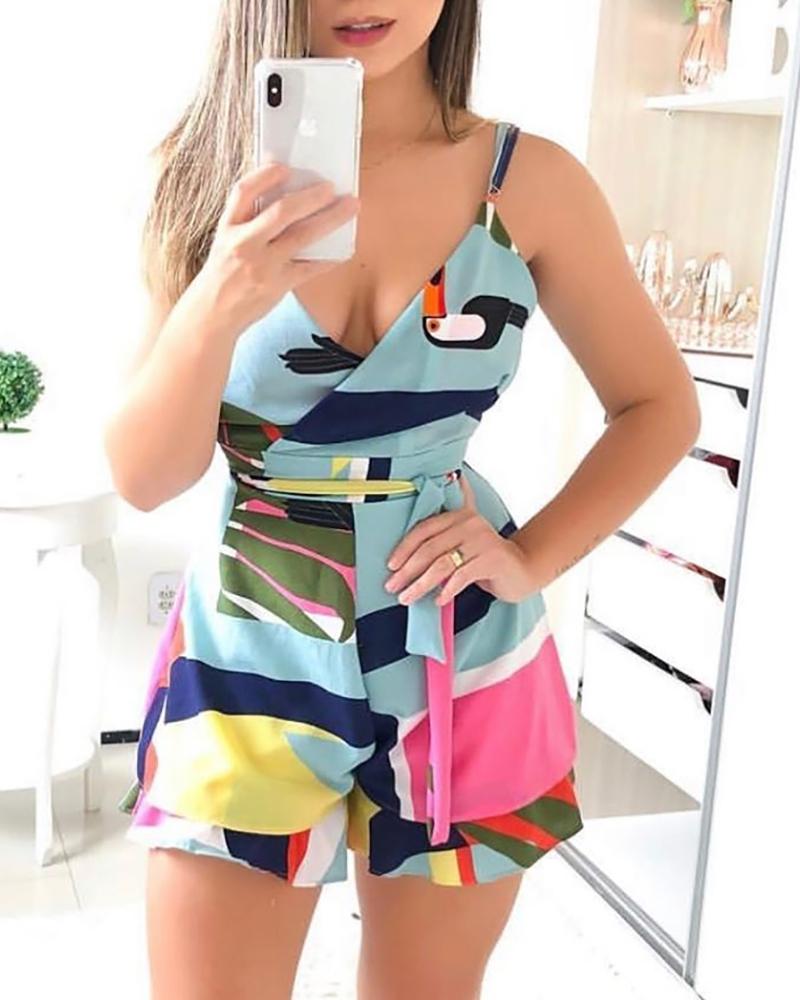 Colorblock Geo Print Spaghetti Strap Romper