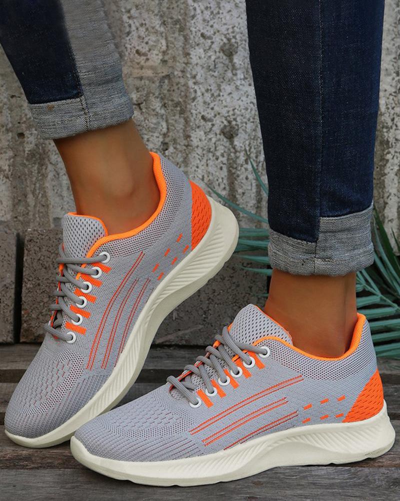 Colorblock Lace-up Knit Sneakers, Gray