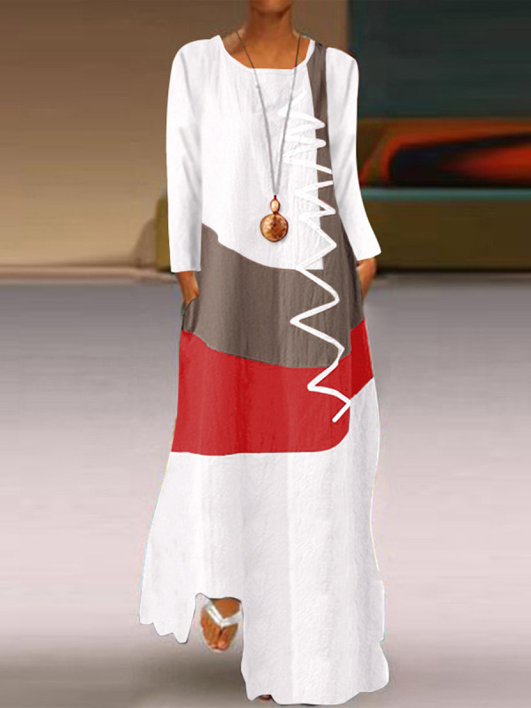 Colorblock Long Sleeve maxi Dress
