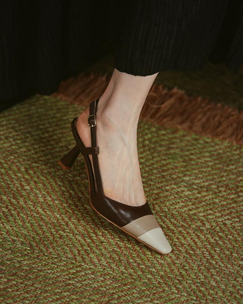 Colorblock Slingback Square Toe Pyramid Heels, Coffee