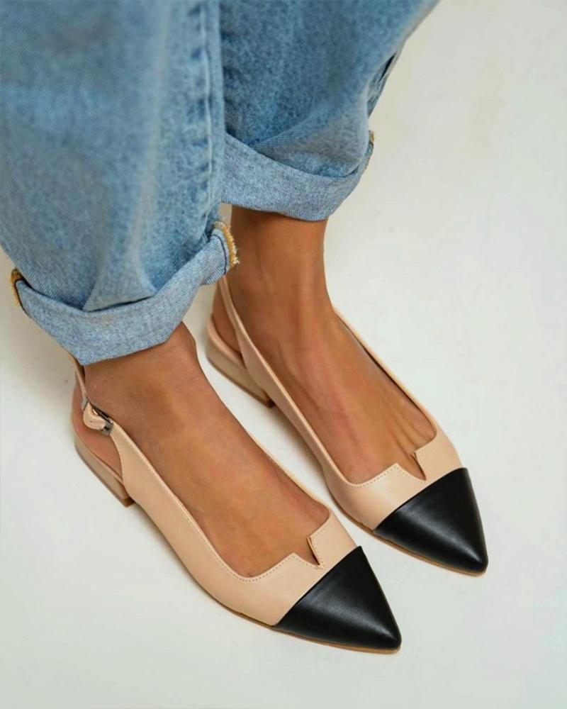 Colorblock V-Cut Point Toe Slingback Shoes, Apricot