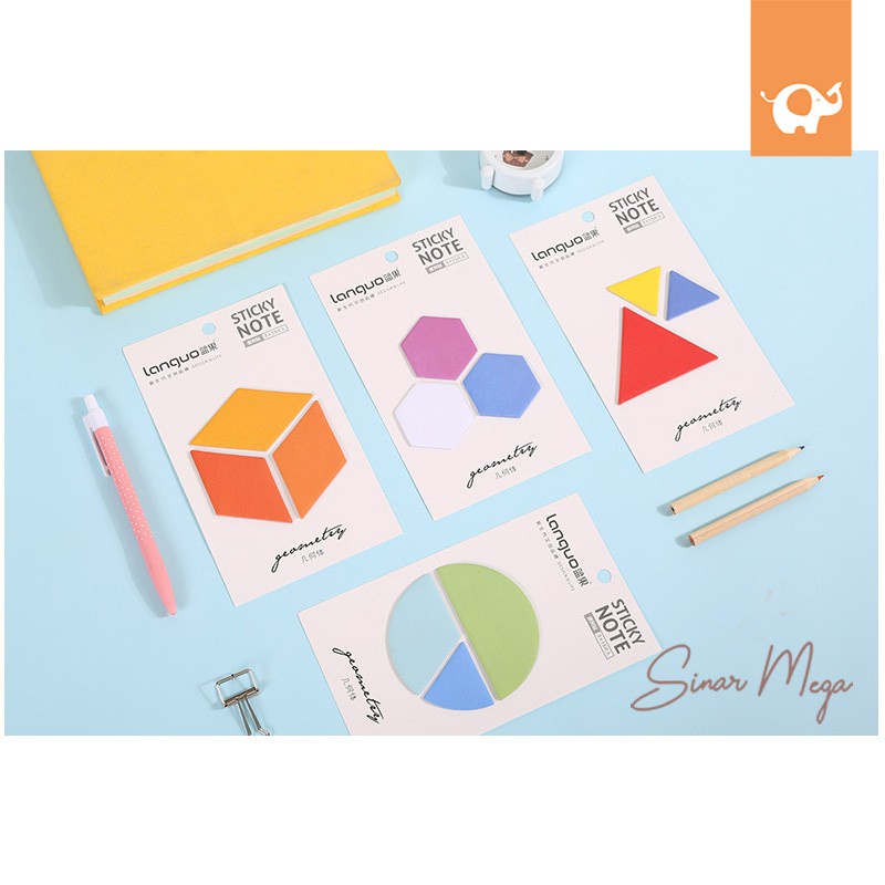 Catatan tempel berbentuk geometri ini hadir dengan warna-warna menarik. Terdiri dari bebagai macam ukuran dalam satu set yang bisa kamu sesuaikan dengan keperluan kamu. Bentuk dan warna yang eye catching membantu kamu supaya selalu ingat dengan isi catatanmu.
