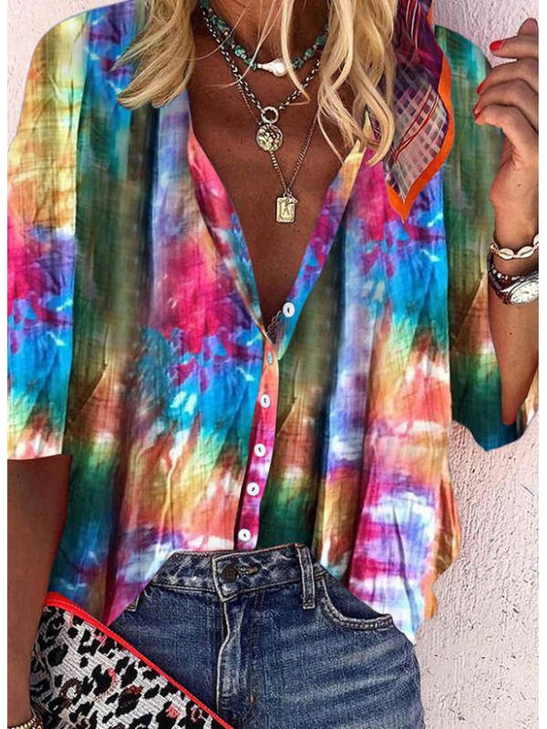 blouses,colorful tie-dye long-sleeved shirt