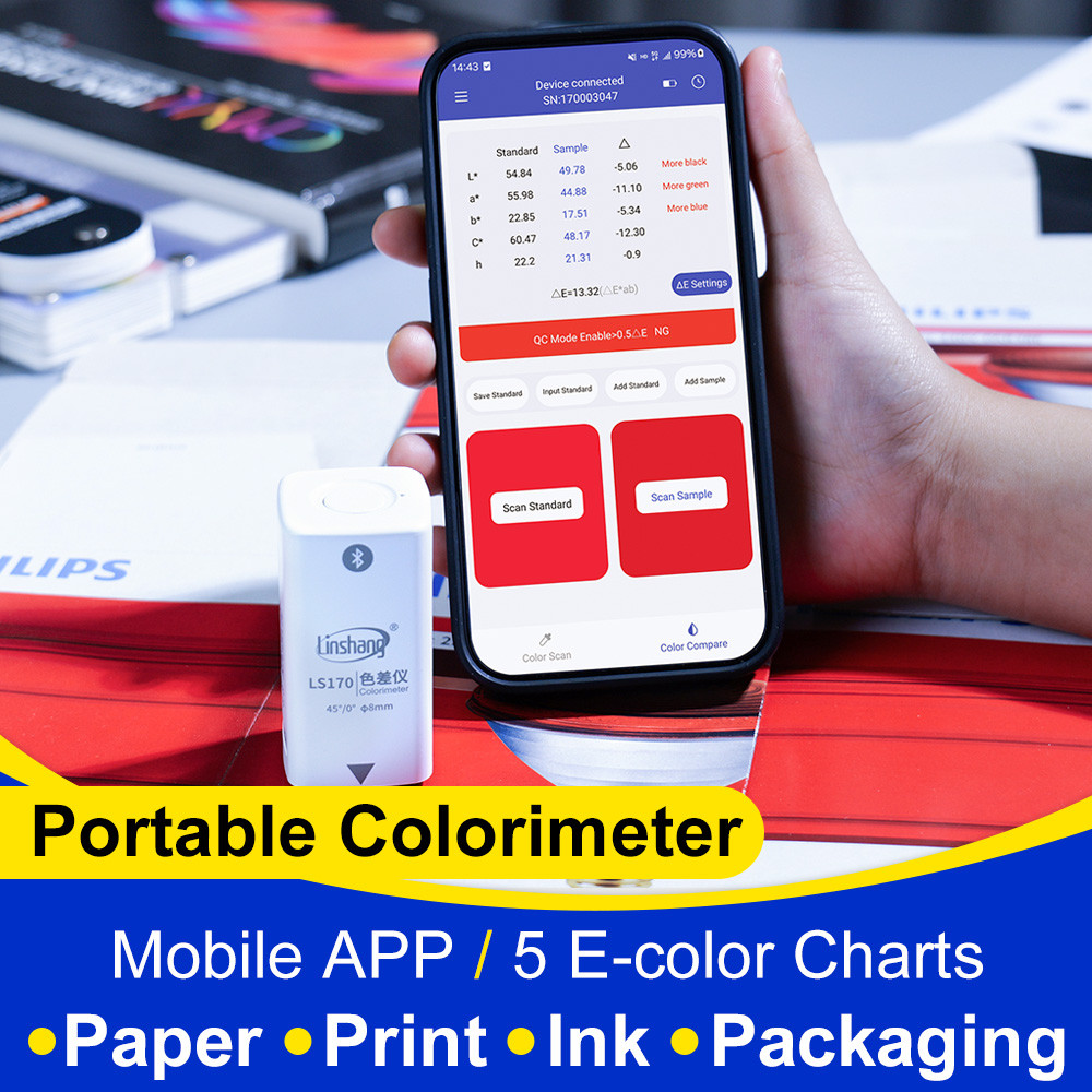 The colorimeter for colour measurement built-in 5 industry-standard electronic color charts with cheap digital colorimeter price.