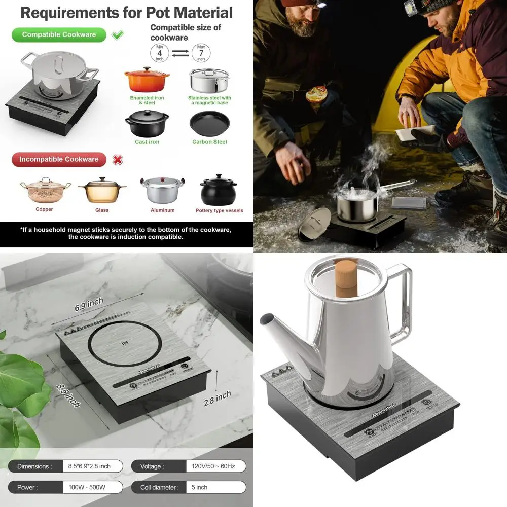 Compact 500W 110V Portable Induction Cooktop - Ideal for Small Spaces, RVs, and Outdoor Cooking