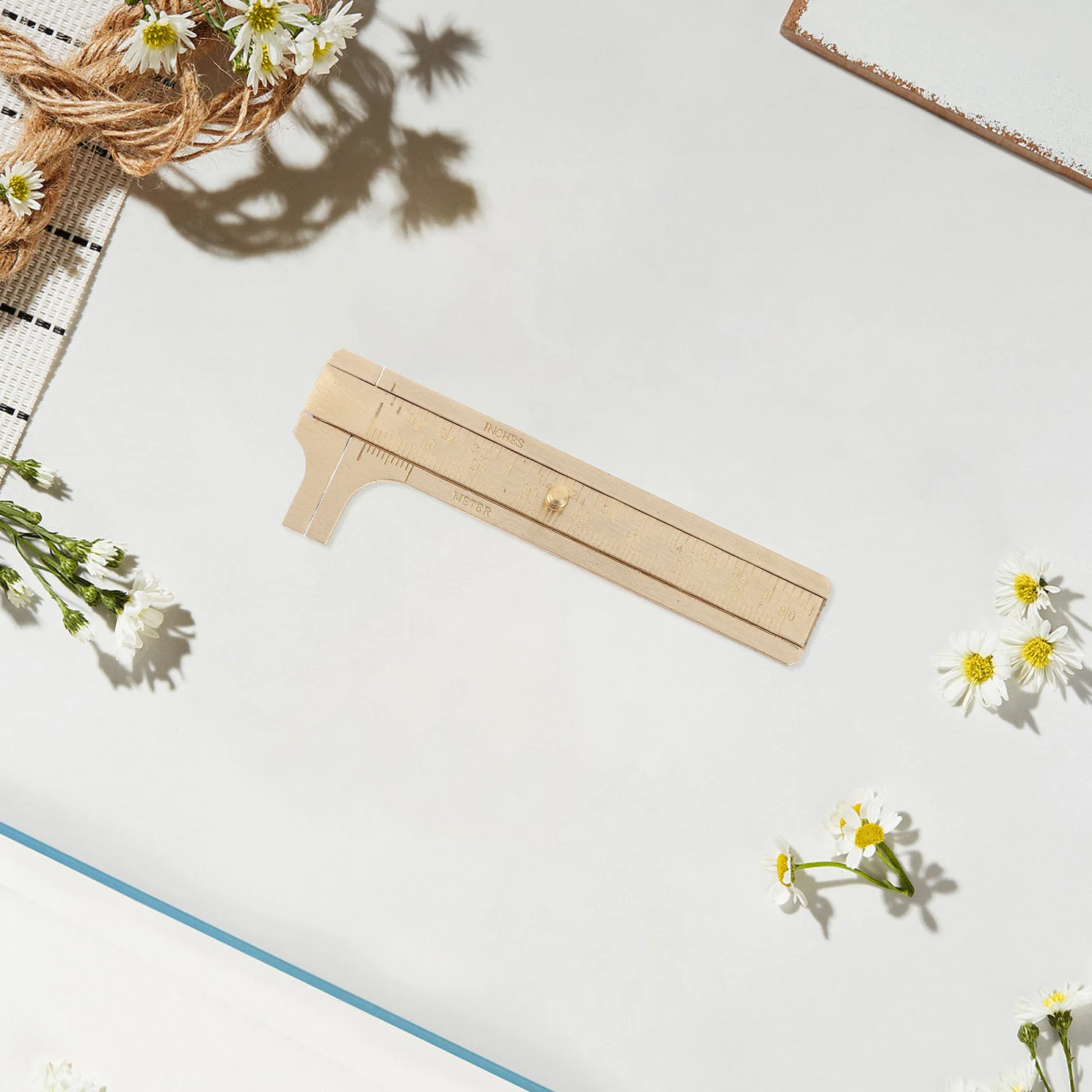 Compact 80Mm Brass Caliper Measuring Tool with Dual Inch Cm Scales High Precision Pocket Ruler for Jewelers Watchmakers Portable