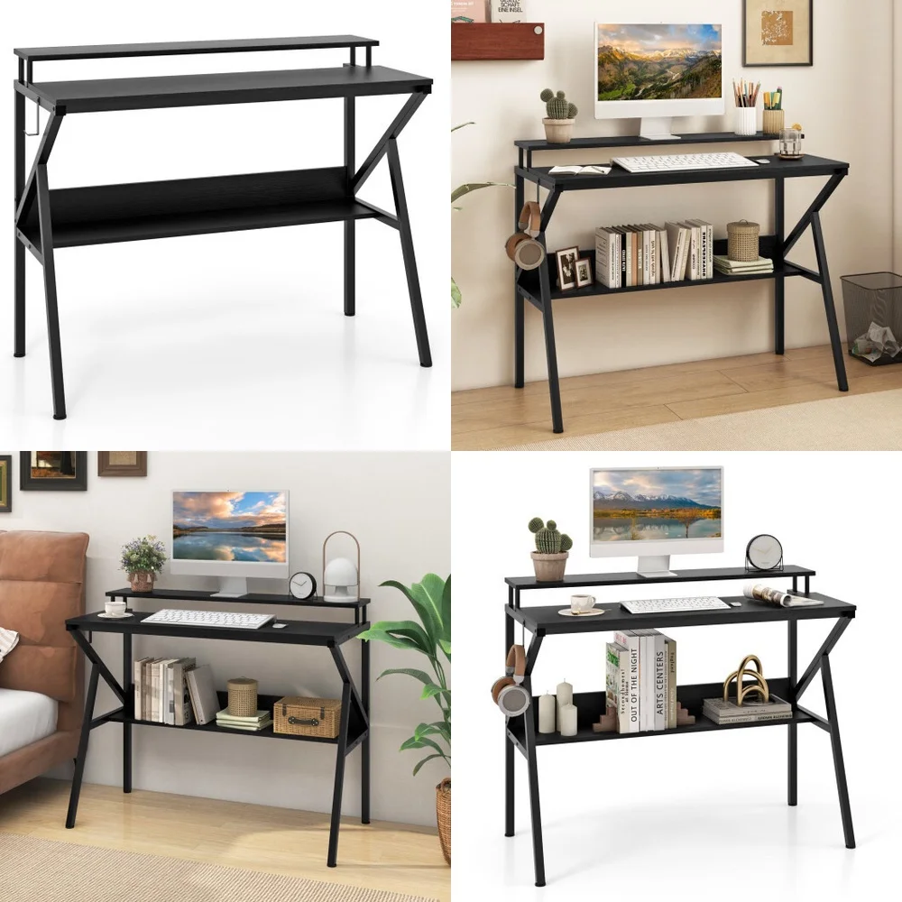 Computer DesksCompact Computer Desk with Monitor Riser and Storage Shelf for Efficient Work Space