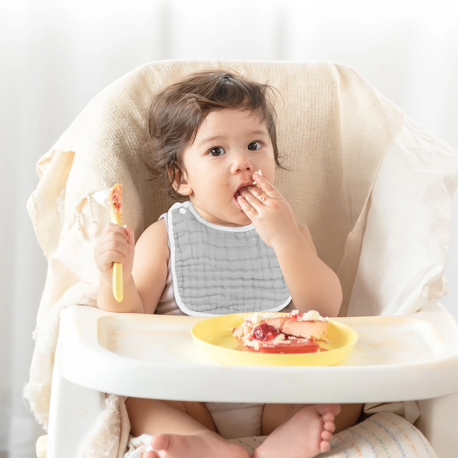 4Pcs Cotton Baby Drool Bibs Muslin Soft Highly Absorbent Adjustable Button Closure Newborn Feeding Bandana Burp Cloths