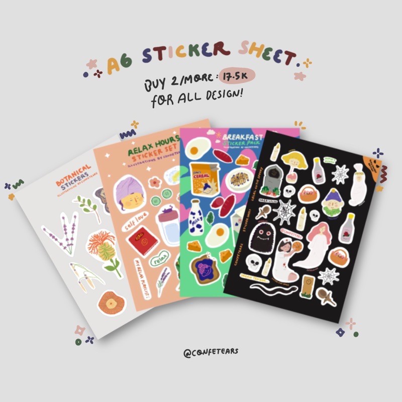 Confetears A6 Kiss Cut Sticker Sheets Bundle (MINIMAL PEMBELIAN 2 PCS)