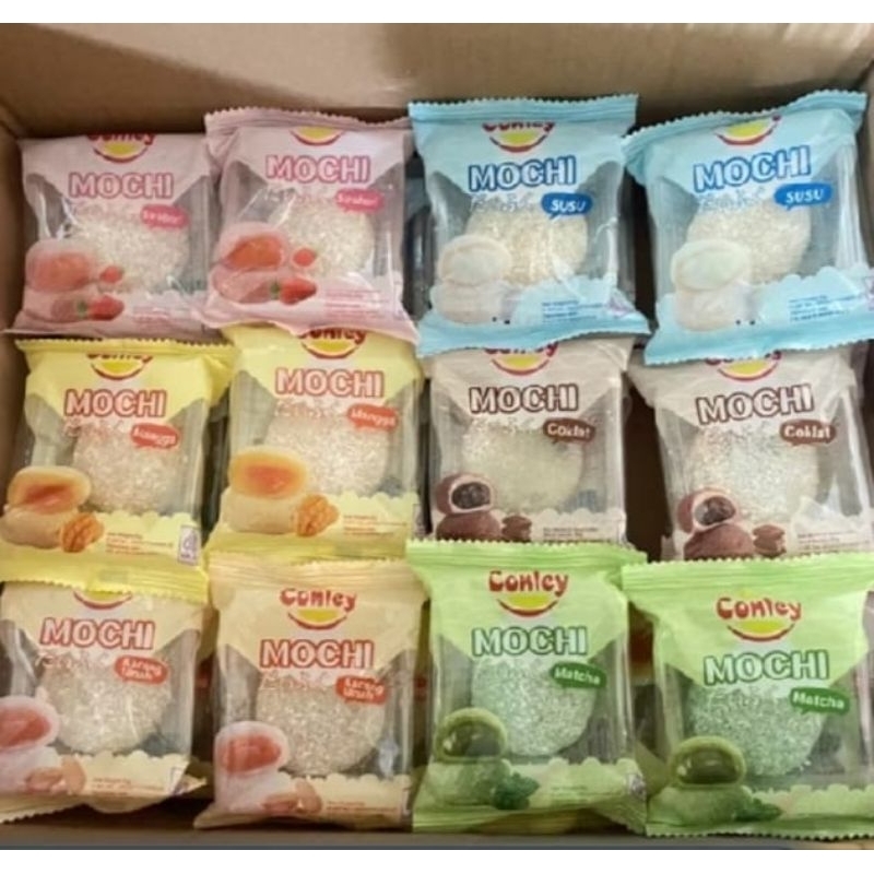 Conley Mochi terbuat dari tepung ketan pilihan dengan aneka isian yang lezat. di lapisi dengan parutan kelapa yang menambah kenikmatan mochi ini.