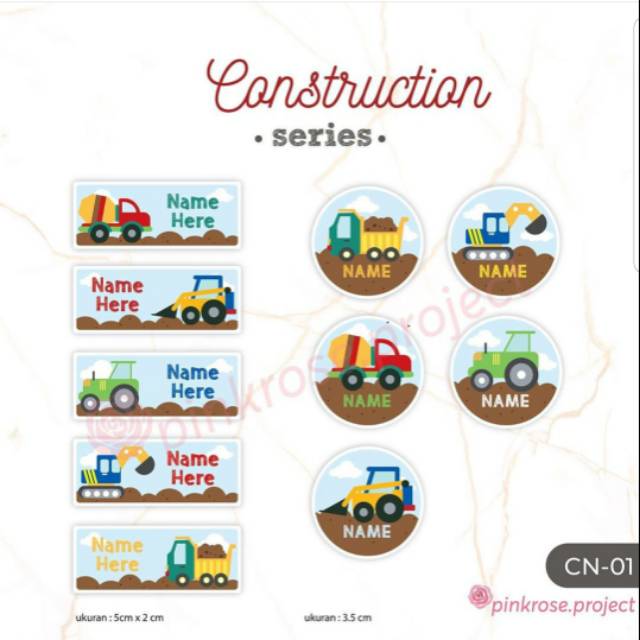 Construction Sticker Label Nama Anak Waterproof 60 pcs