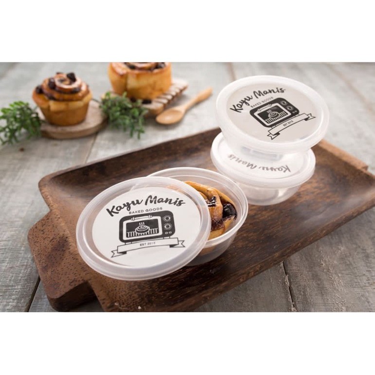 Container plastik (microwaveable) ukuran 200ml atau 400ml untuk mengemas produk kami secara satuan.