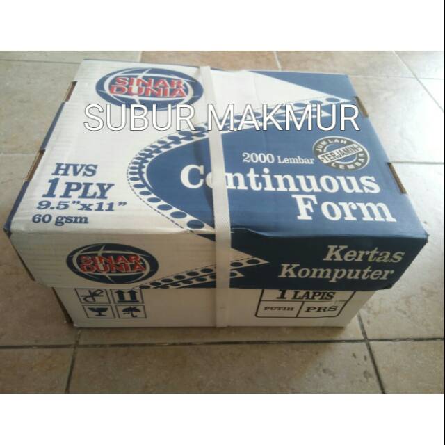 Continous Form 9,5"x11" Rangkap 1PRS (K1/2PRS) Sinar Dunia/Paperline
