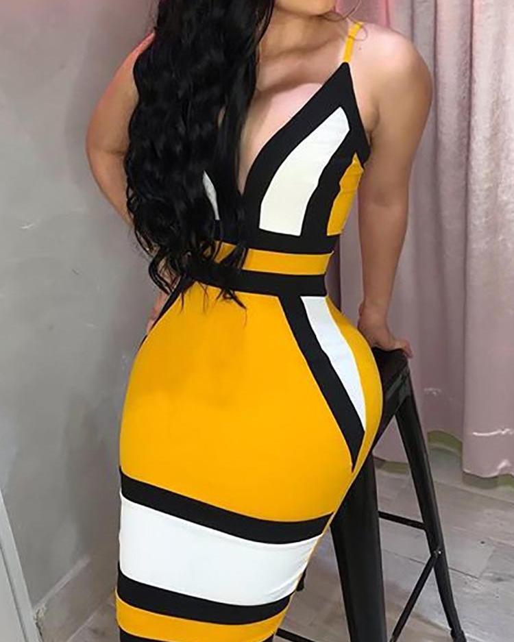 Contrast Color Spaghetti Strap Party Dress, Yellow