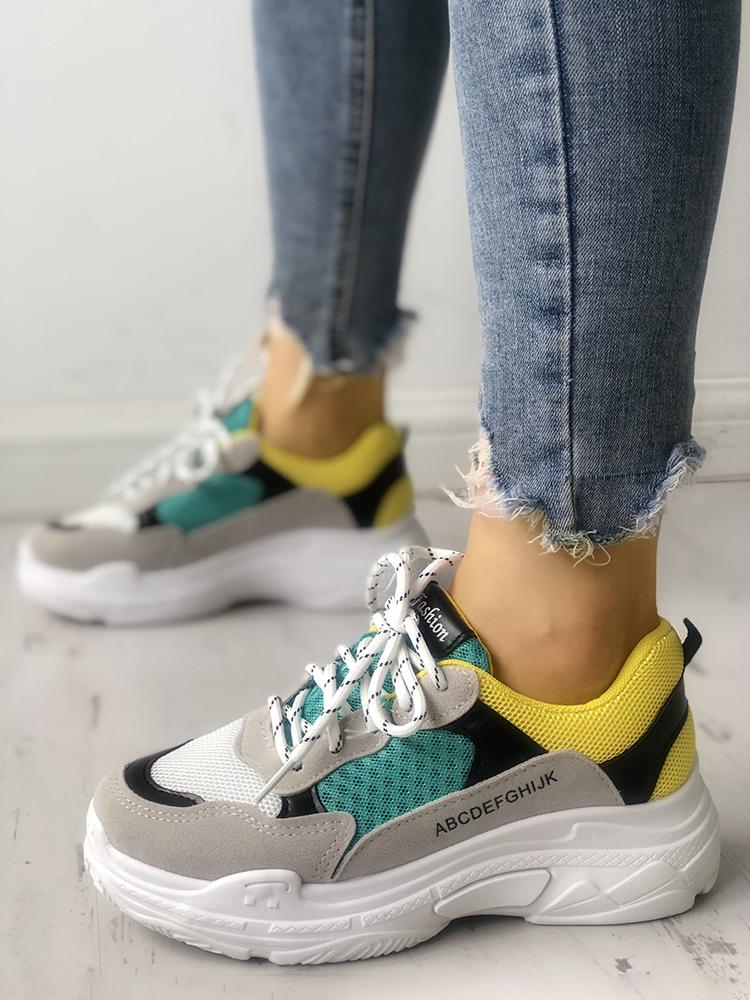 Contrast Color Splicing Breathable Net Sneakers, Yellow