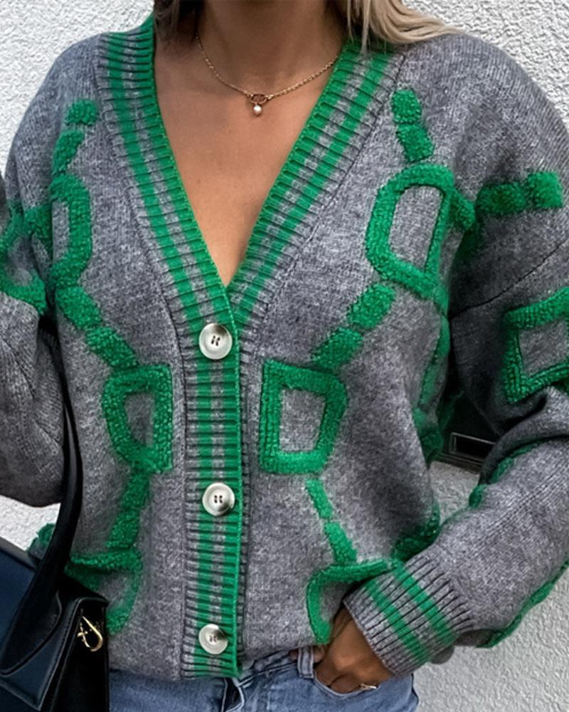 Contrast Paneled Letter Pattern Button Front Cardigan, Gray