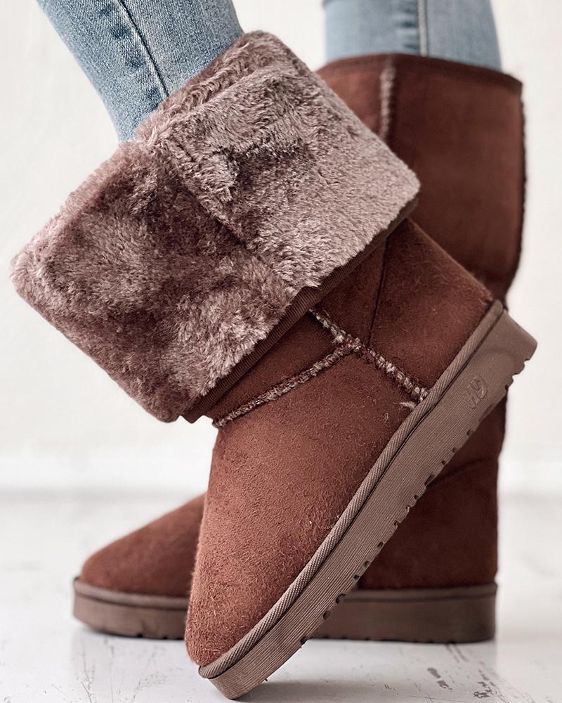 Contrast Piping Lined Snow Boots, Coffee