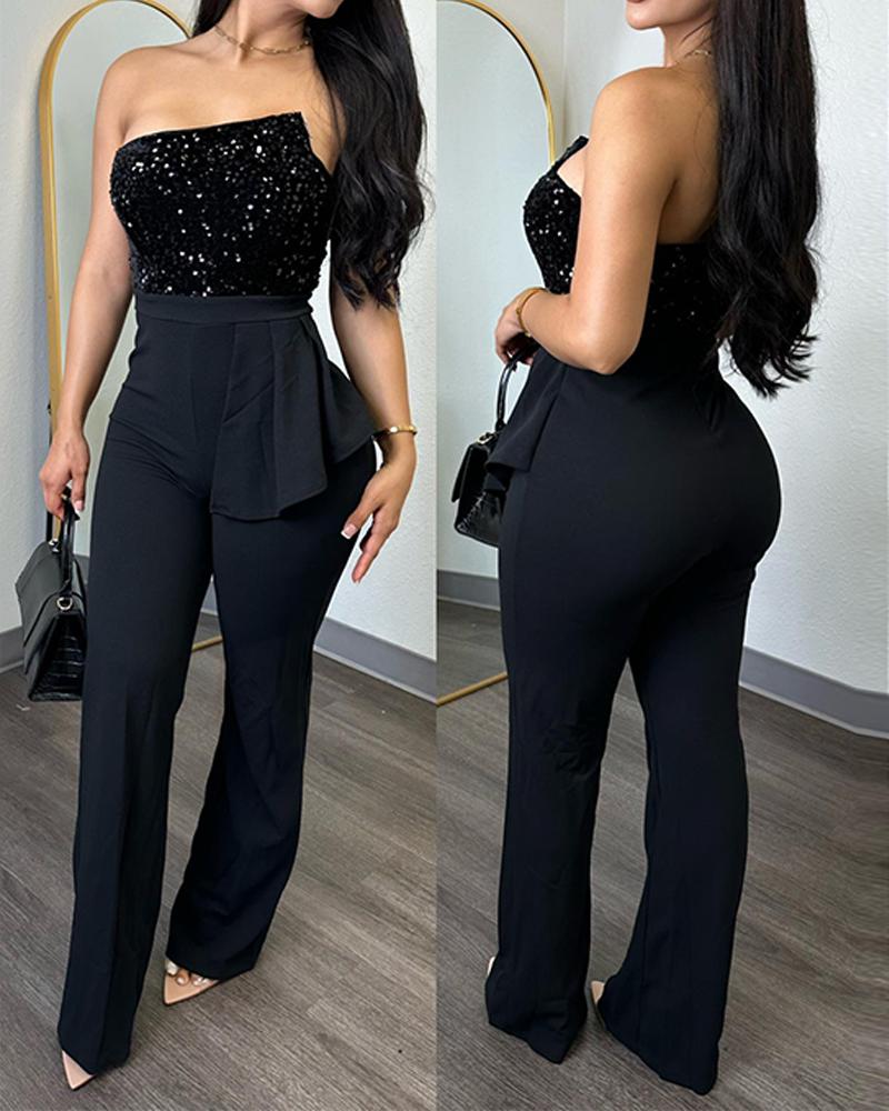 Contrast Sequin Asymmetrical Hem Jumpsuit, Black