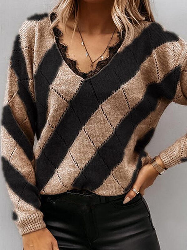 2020 autumn and winter korean style color patchwork V neck knittd cardigans womens sweaters cardigans womens