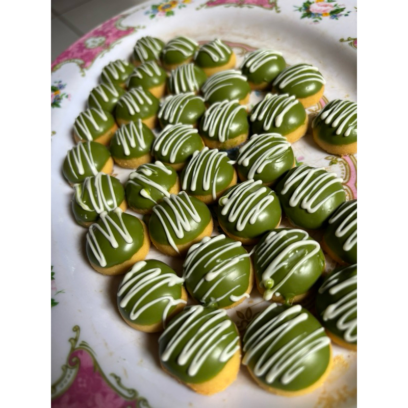 Cookies dengan coklat greentea diatasnya, dengan perpaduan rasa manis yang pas dijamin akan membuat ketagihan. pencinta Greentea sangat wajib mencoba