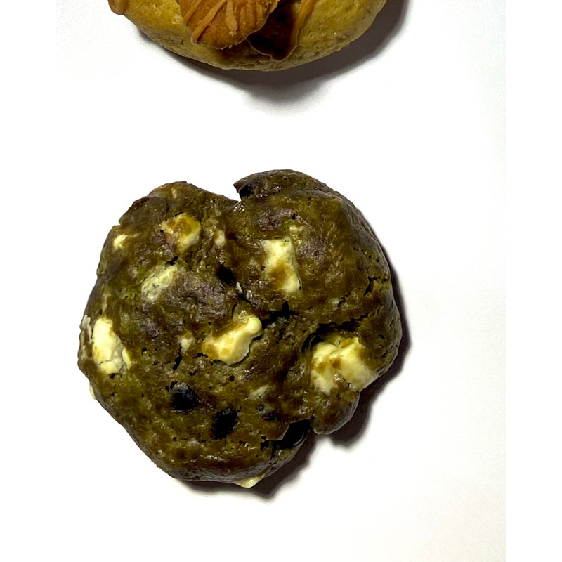Cookies rasa matcha dengan gabungan dark choco chips dan white chocolate