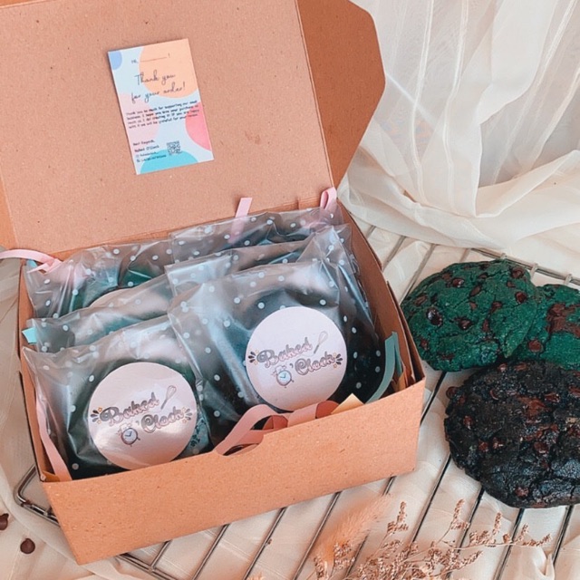 Pengiriman menggunakan bubble wrap disetiap cookiesnya dan diluar boxnya.