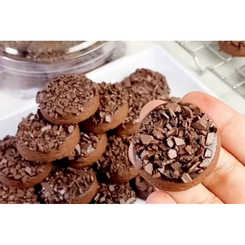 Cookies rasa coklat dengan lelehan coklat dan taburan coklat flex