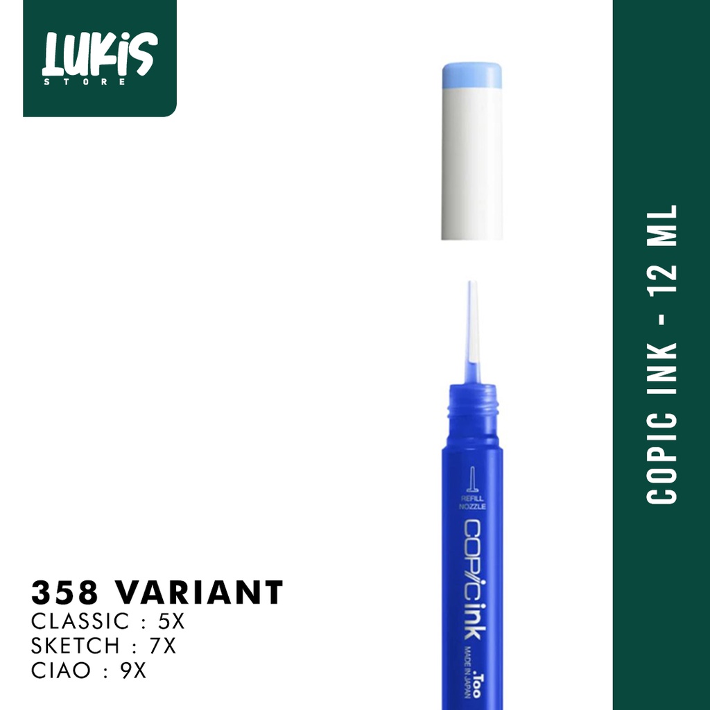 - Copic Ink tersedia dalam 358 pilihan warna