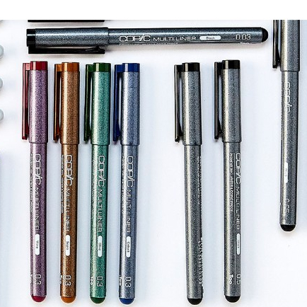 Pena tinta Copic Multiliner serbaguna berbasis pigmen dan kompatibel dengan spidol Copic. Multiliner juga tahan air - tinta tidak akan luntur dengan air setelah garis pena benar-benar kering.Multiliner adalah pilihan ideal ketika aliran garis yang konsisten dan presisi diperhitungkan.