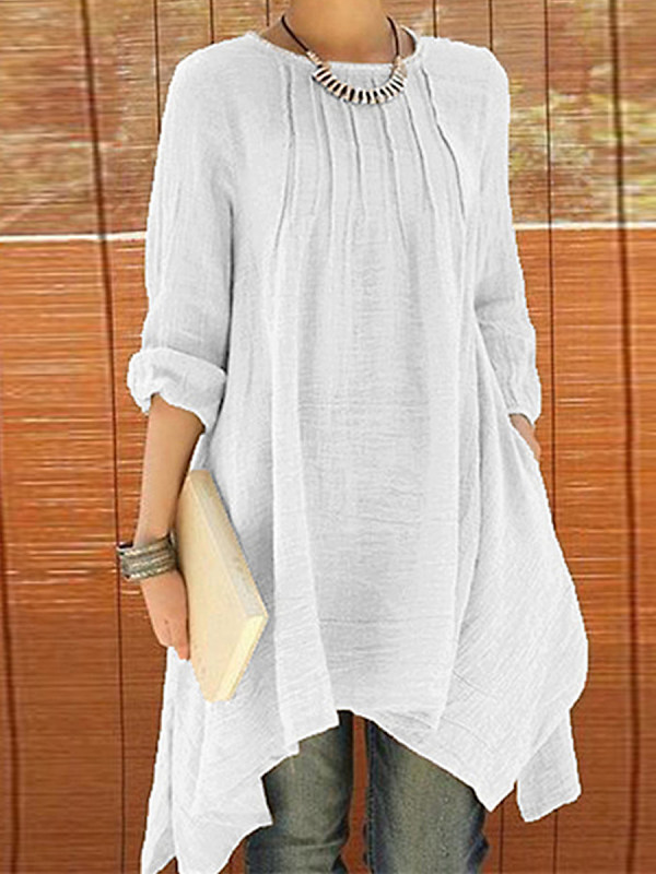 Cotton And Linen Long Sleeve Dress